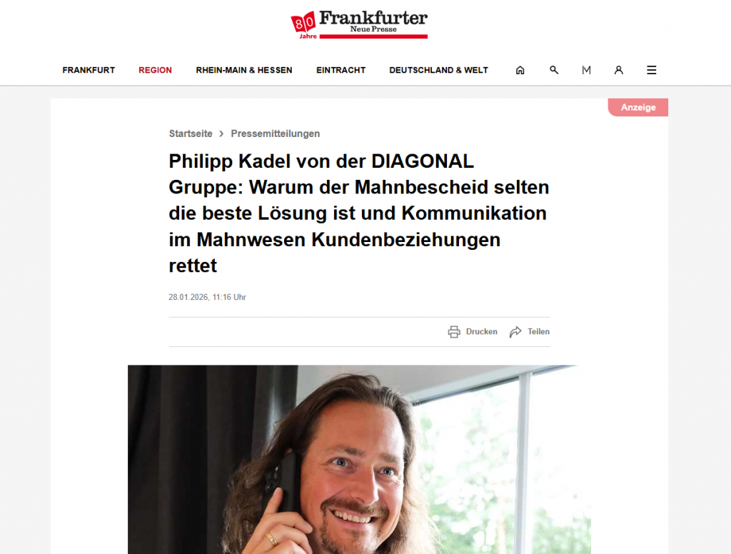 Philipp Kadel von der DIAGONAL Gruppe: Warum der Mahnbescheid selten die beste Lösung ist und Kommunikation im Mahnwesen Kundenbeziehungen rettet